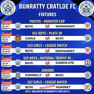 Best of luck to all Bunratty Cratloe FC teams involved...